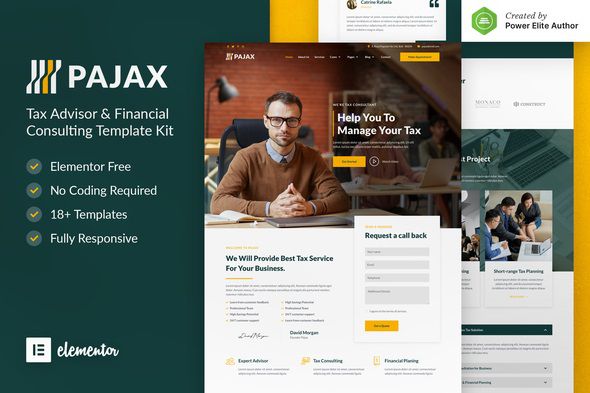 Pajax is a professional and modern Tax Advisor & Financial Consulting Elementor Template Kit designed specifically for accountants, tax consultants, financial advisors, auditors, and business consulting firms. With its clean and corporate design, Pajax helps you build a trustworthy online presence that communicates expertise and reliability.